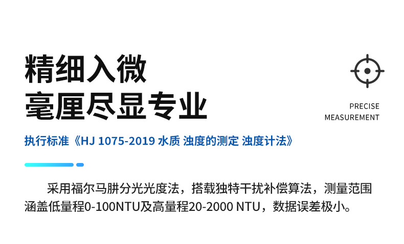 1.测量范围:低量程0-100NTU,高量程20-2000 NTU;