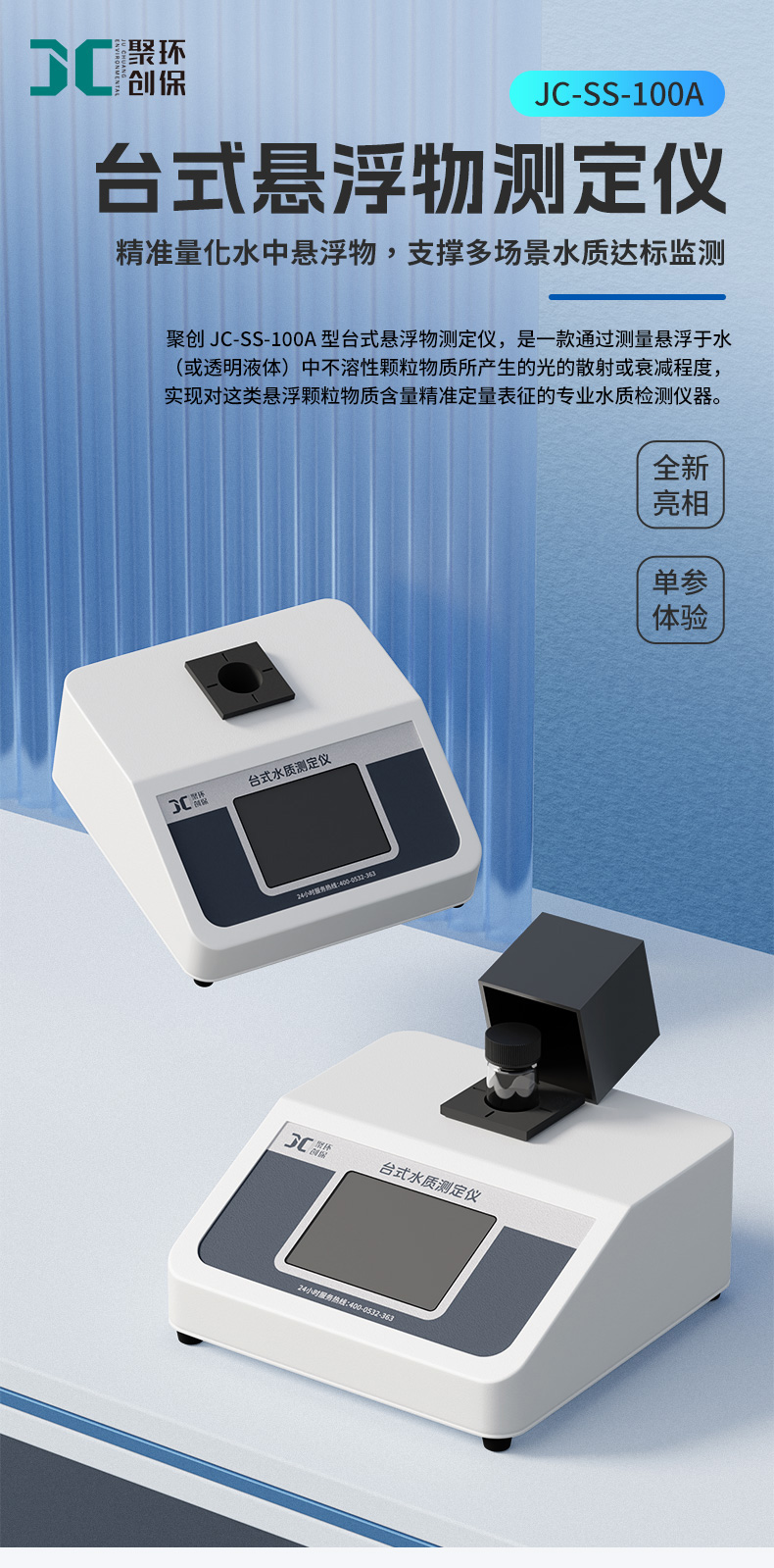 聚创JC-SS-100A型台式悬浮物测定仪用于测量悬浮于水(或透明液体)中不溶性颗粒物质所产生的光的散射或衰减程度,并能定量表征这些悬浮颗粒物质的含量。本仪器可广泛用于水厂、食品、化工、冶金、环保等部门,是常用的实验室仪器。